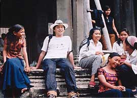 アンコール・ワット中央祠堂、四面に神が祭られ、僧侶たちが祈りを捧げていた。 |